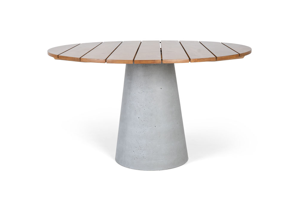 Sua base cônica sustenta o tampo com estabilidade e precisão, criando uma composição sólida, acolhedora e visualmente equilibrada. Pensada para diferentes espaços e proporções, é uma mesa que atravessa o tempo com personalidade e presença.