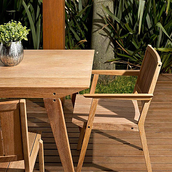 Ideal tanto para sua área externa quanto para a interna. Produto de madeira maciça Cumaru, uma madeira nobre e de melhor desempenho para o tempo. O seu padrão de acabamento permite unir alta qualidade e resistência a um fino toque de beleza em uma única peça, garantindo estabilidade e durabilidade na estrutura. Com opção de acabamento: