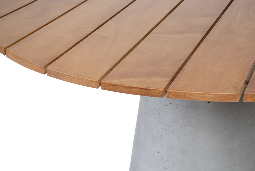Inspirada no equilíbrio entre força estrutural e estética contemporânea, a Bremen combina a presença escultórica do concreto com a naturalidade da madeira maciça.
