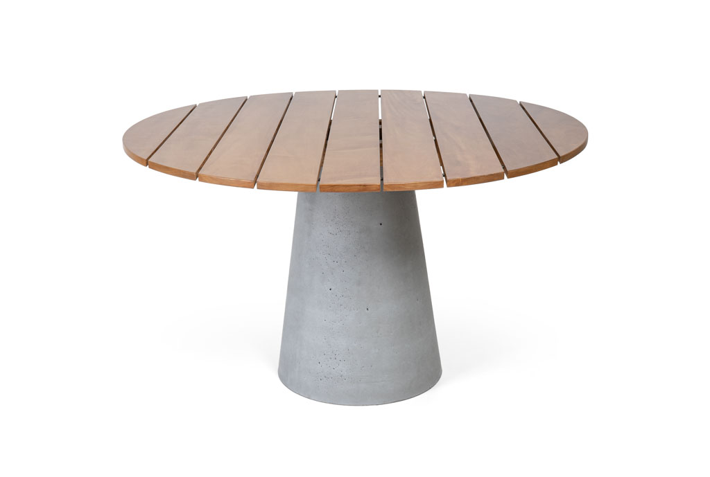 Inspirada no equilíbrio entre força estrutural e estética contemporânea, a Bremen combina a presença escultórica do concreto com a naturalidade da madeira maciça.