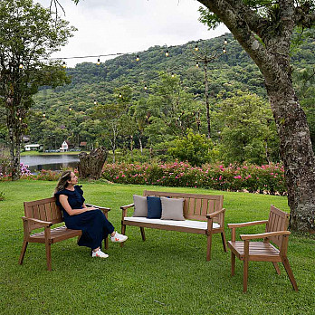 Banco Jade 3 lugares Uma varanda aconchegante, um jardim surpreendente. A Linha Jade traz o conforto e o desejo de um... Marca: Butzke Orçar Banco Jade 3 lugares Uma varanda aconchegante, um jardim surpreendente. A Linha Jade traz o conforto e o desejo de um refúgio ao ar livre, trazendo o encontro com à natureza. Uma pausa para o relaxamento, para o equilíbrio. Os móveis Butzke são desenvolvidos dentro dos principais conceitos de design, inovação e sustentabilidade que, juntos, conferem às peças uma identidade única. Ideal tanto para sua área externa quanto para a interna. Produto de madeira maciça eucalipto, com opção de acabamento:- Impregnante Polisten, que permite a troca de umidade com o Informações Banco Jade 3 lugares Uma varanda aconchegante, um jardim surpreendente. A Linha Jade traz o conforto e o desejo de um refúgio ao ar livre, trazendo o encontro com à natureza. Uma pausa para o relaxamento, para o equilíbrio. Os móveis Butzke são desenvolvidos dentro dos principais conceitos de design, inovação e sustentabilidade que, juntos, conferem às peças uma identidade única. Ideal tanto para sua área externa quanto para a interna. Produto de madeira maciça eucalipto, com opção de... detalhes do produto Fechar